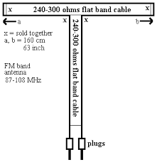 Kanske inte lätt att hitta en färdig sådan antenn. Men du kan tillverka en själv med hjälp av bandkabel enligt bilden.