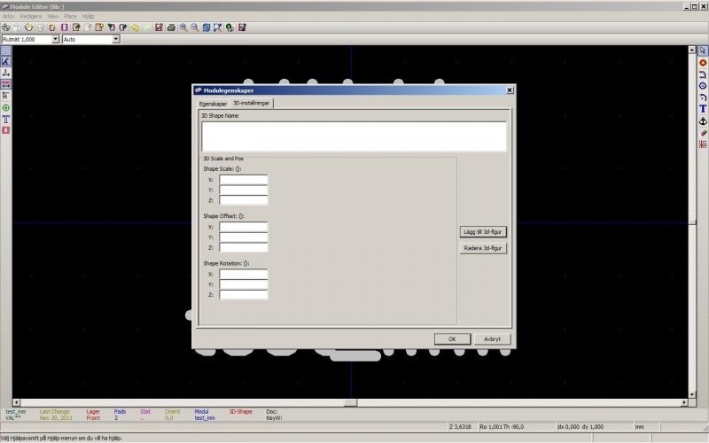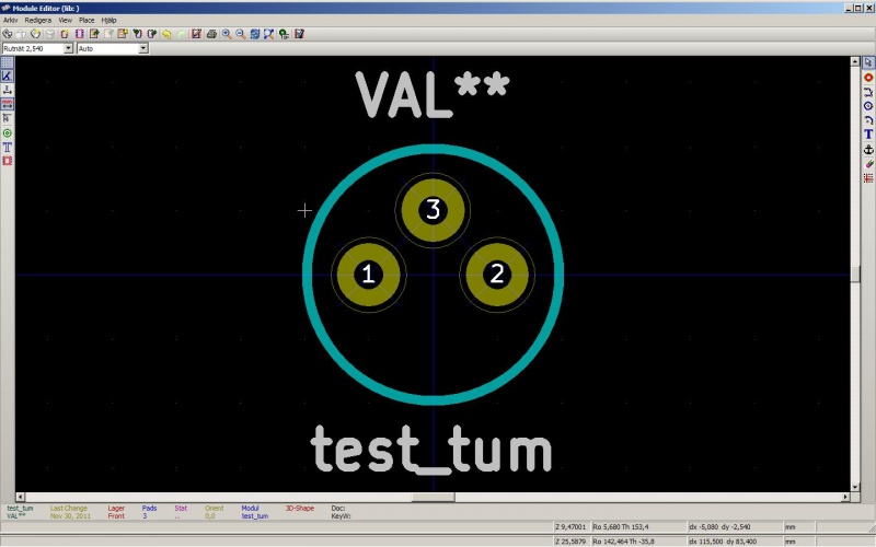 Skapa modul/footprint i KiCad:s modul-editor för Test_tum