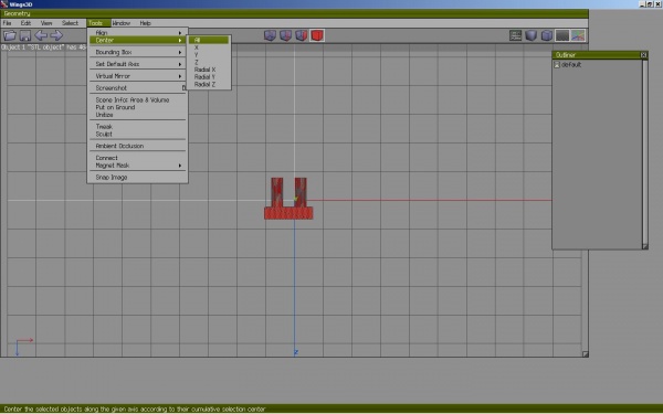 Modellens centerpunkt flyttas nu till X0.Y0.Z0